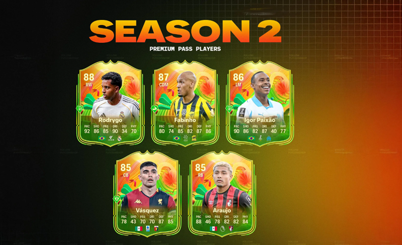 With FC 26 entering its second season, you will have the opportunity to earn 40 additional free and premium rewards. Real Madrid's Rodrygo is the best player on the paid pass this season, boasting an overall rating of 88 with outstanding stats across the board. He's available in two versions of the EA FC 26 Season 2 Mexico '70 season pass, with the World Tour versions featuring Hirving Lozano and Rodrygo available at level 40. The Real Madrid striker is contestable in high-level passes, although the Mexican winger plays a significant role in free passes.